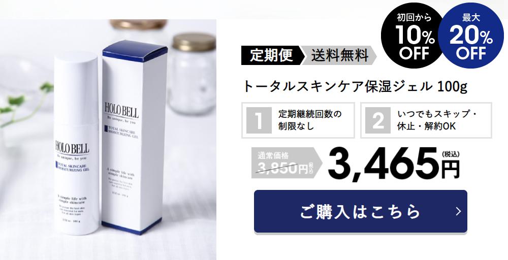 定期便コースなら初回から10%OFFの3465円。継続回数の縛りはなく、いつでも休止・解約OKです。配送間隔は最大3ヶ月先まで伸ばせるので、自分のペースでスキンケアしたい人におすすめ。