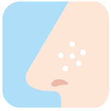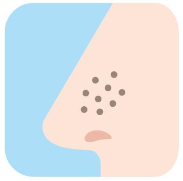 皮脂の分泌が多いことで毛穴が押し広げられている状態。黒ずんではいないものの、鼻や頬を近くで見ると目立ちます。この皮脂の過剰分泌は肌の水分不足のサインなので、保湿効果の高いスキンケアアイテムを取り入れるのが効果的です。